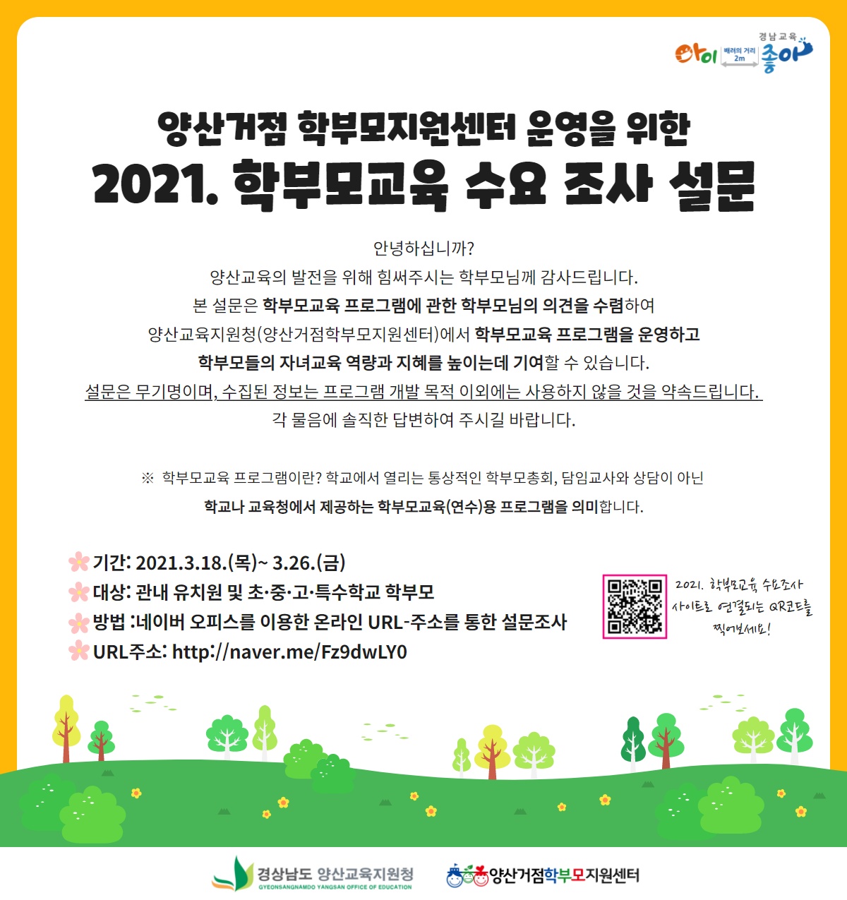 양산거점 학부모지원센터 운영을 위한 2021. 학부모교육 수요 조사 설문
