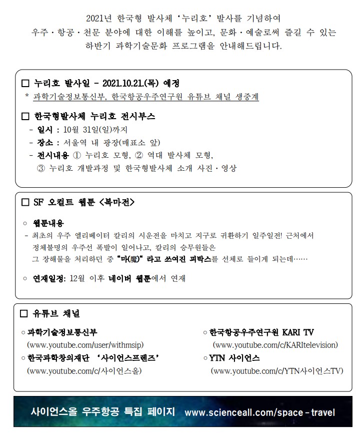 항공우주분야 과학기술문화 하반기 프로그램 안내
