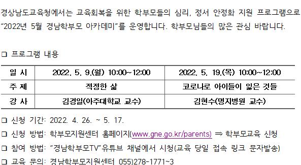 2022. 경남학부모지원센터 사이버학부모교실 교육 안내